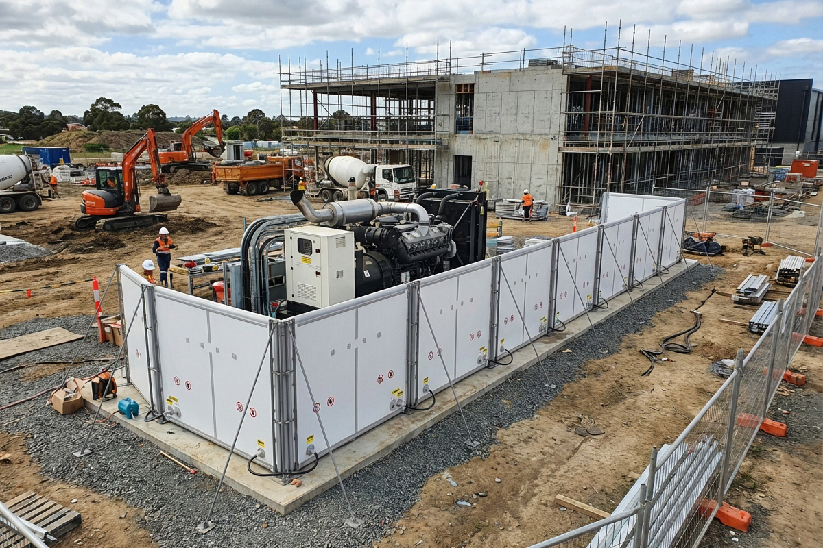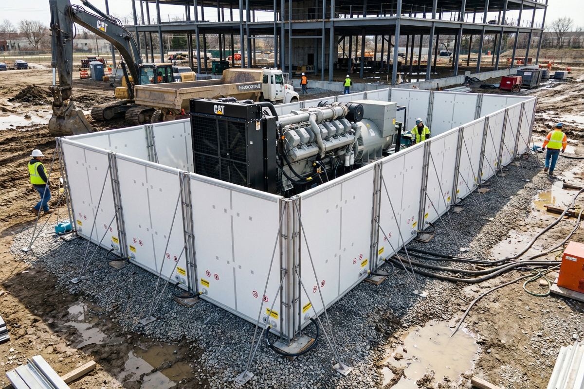 Las barreras acústicas móviles se utilizan alrededor de instalaciones temporales, como generadores, bombas e instalaciones de emergencia.
