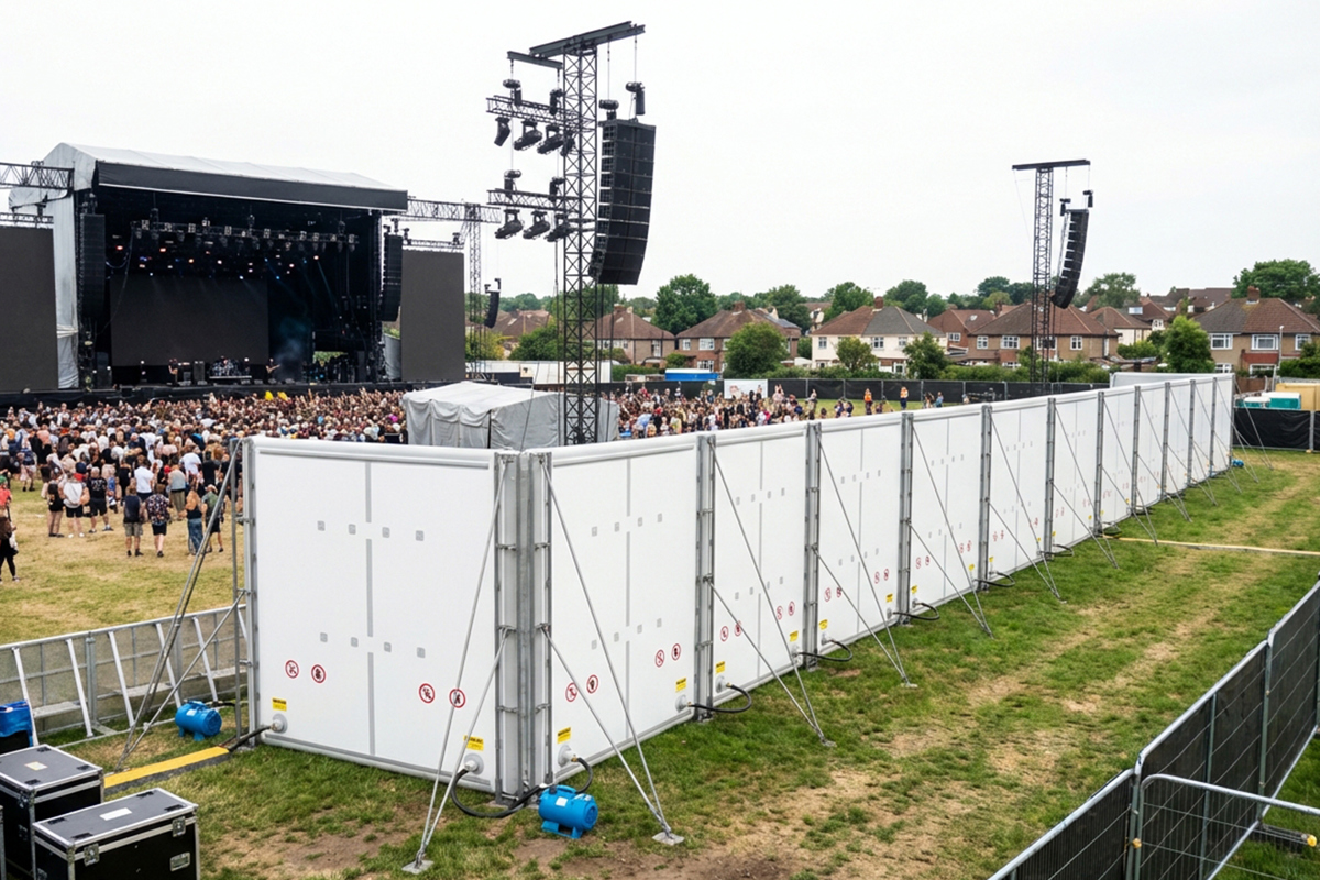 Las barreras acústicas móviles se utilizan en eventos y festivales para limitar la contaminación acústica en los alrededores.