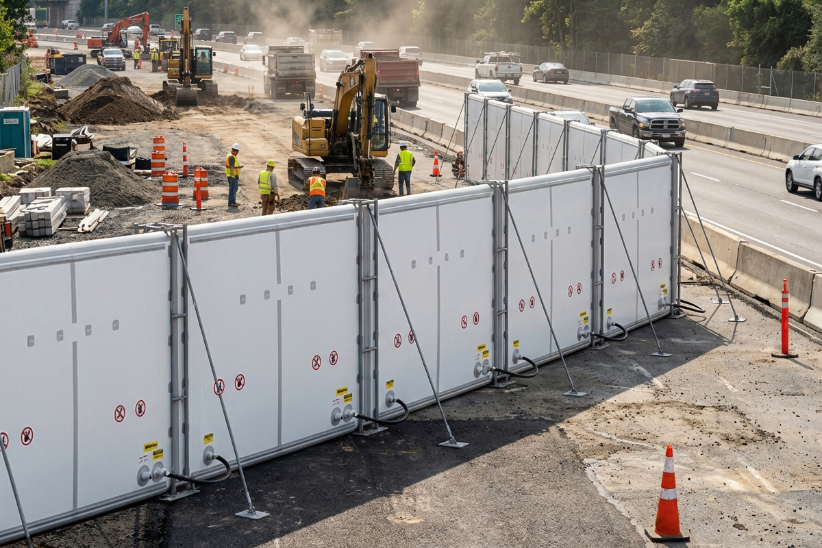 Las barreras acústicas móviles se utilizan durante las obras temporales en carreteras y autopistas para reducir el ruido del tráfico y de las obras.